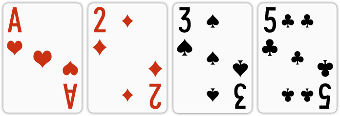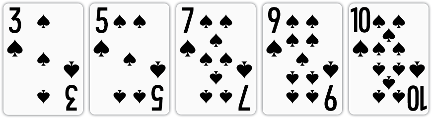 | 백스트레이트 | 무늬와 상관 없이 연속된 숫자로 된 카드가 A, 2, 3, 4, 5로 구성된 경우 |
