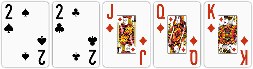 네 장의 카드 중에 무늬나 숫자가 다른 카드가 두 장 뿐인 경우, 높은 숫자의 카드 2장을 빼고 나머지 2장으 투 베이스로 사용합니다. 이 때, 제외된 카드는 투 베이스끼리의 족보 비교에 사용되지 않습니다. |