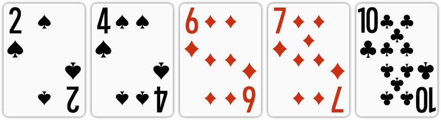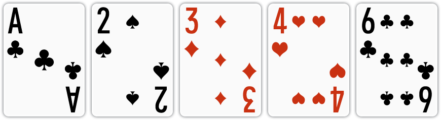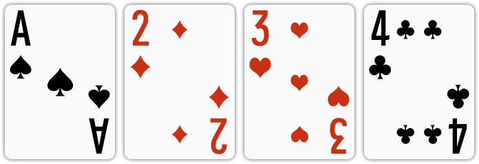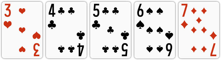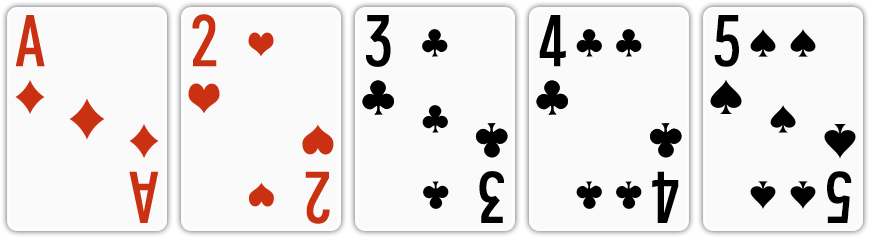 | 백스트레이트 | 무늬와 상관 없이 연속된 숫자로 된 카드가 A, 2, 3, 4, 5로 구성된 경우 |