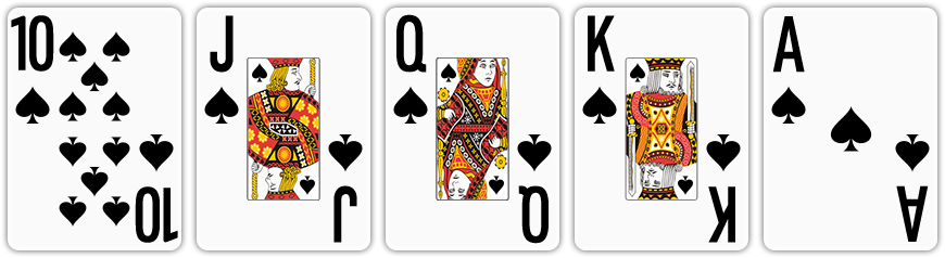 | 로얄스트레이트플러시 | 5장의 카드가 모두 같은 무늬이면서 10, J, Q, K, A순서로 구성된 경우 |