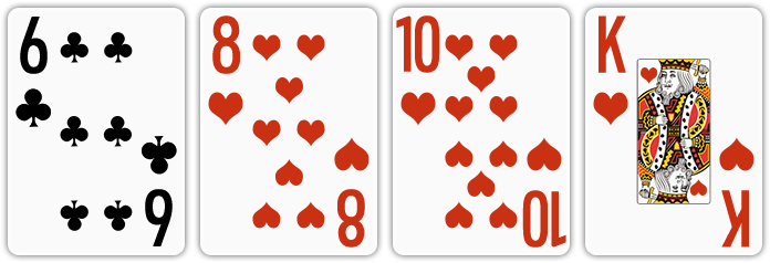 네 장의 카드 중에 카드 두 장의 무늬나 숫자가 같은 경우, 중복되는 무늬나 숫자의 카드 2장 중 높은 숫자의 카드를 빼고 나머지 3장을 베이스로 사용합니다. 이 때, 제외된 카드는 베이스끼리의 족보 비교에 사용되지 않습니다. |